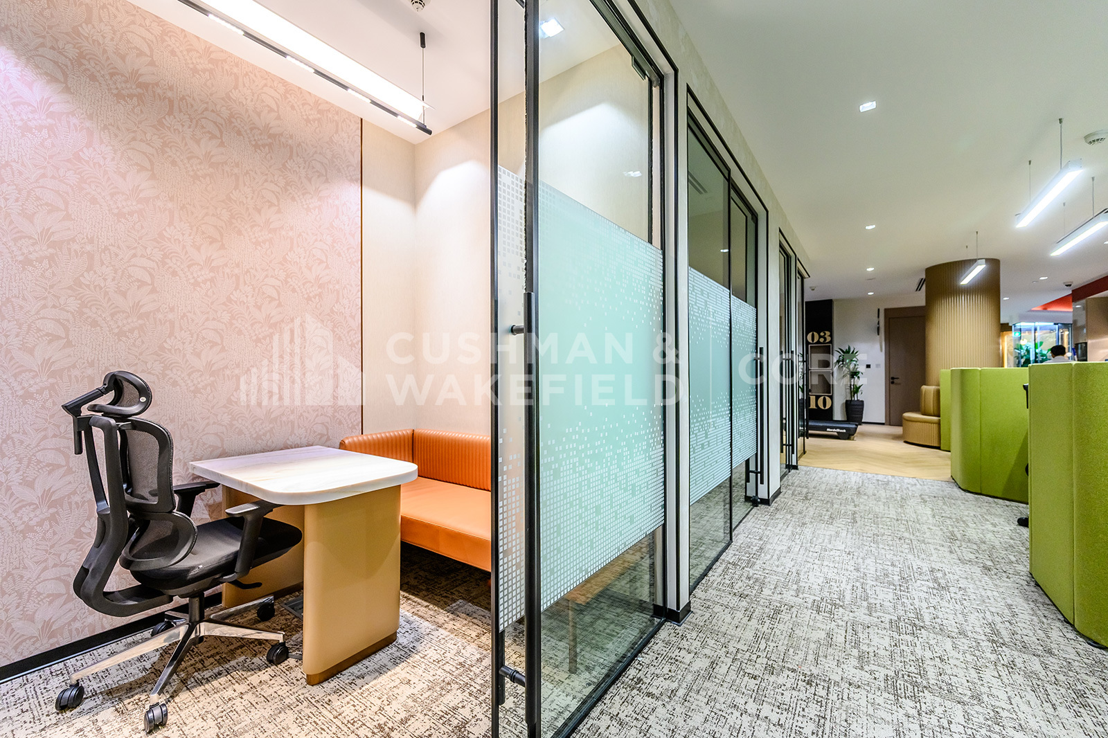 - Soundproof phone booths for private calls